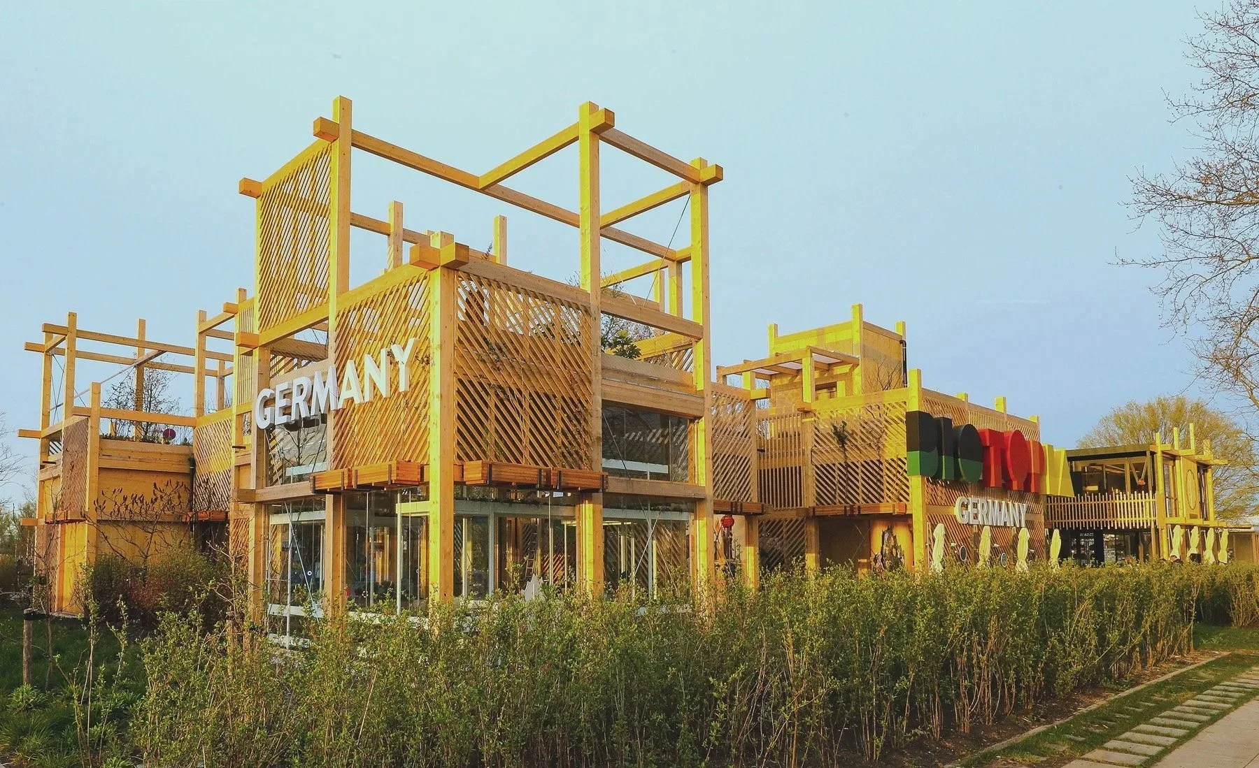 Errichtung des Deutschen Hauses im Jahr 2022 als kombinierter Modul-Holzbau aus 22 Modulen inklusive Laubengang und ergänzender Holzkonstruktionen. Umsetzung in Zusammenarbeit mit der Hübscher Holzbau AG.