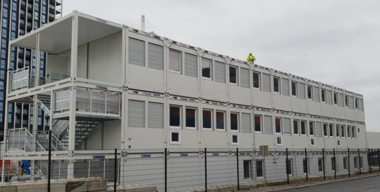 Gesamtumsetzung inklusive Montage eines dreigeschossigen Modulgebäudes mit 72 Einheiten.